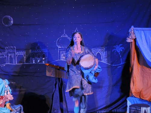Imparai a suonare le percussioni. A cantare. Ad accennare alla danza orientale. Tutto da sola. Non avevo un impianto adeguato, quindi non avevo musiche. Sembrava un teatro formato tascabile, artigianale in tutte le sue parti. Eppure aveva fascino. Una volta mi invitarono in una scuola media, in cui si stava facendo un progetto di integrazione di alcuni ragazzi provenienti dal Marocco. Alla fine li avevo tutti intorno a suonare il jambé con me…loro sì che erano bravi! Ma nello stesso tempo, li avevo catturati col mio racconto, avevano ascoltato il mio canto, erano rapiti dalla mia storia che raccontava del loro mondo, lasciato alle spalle.